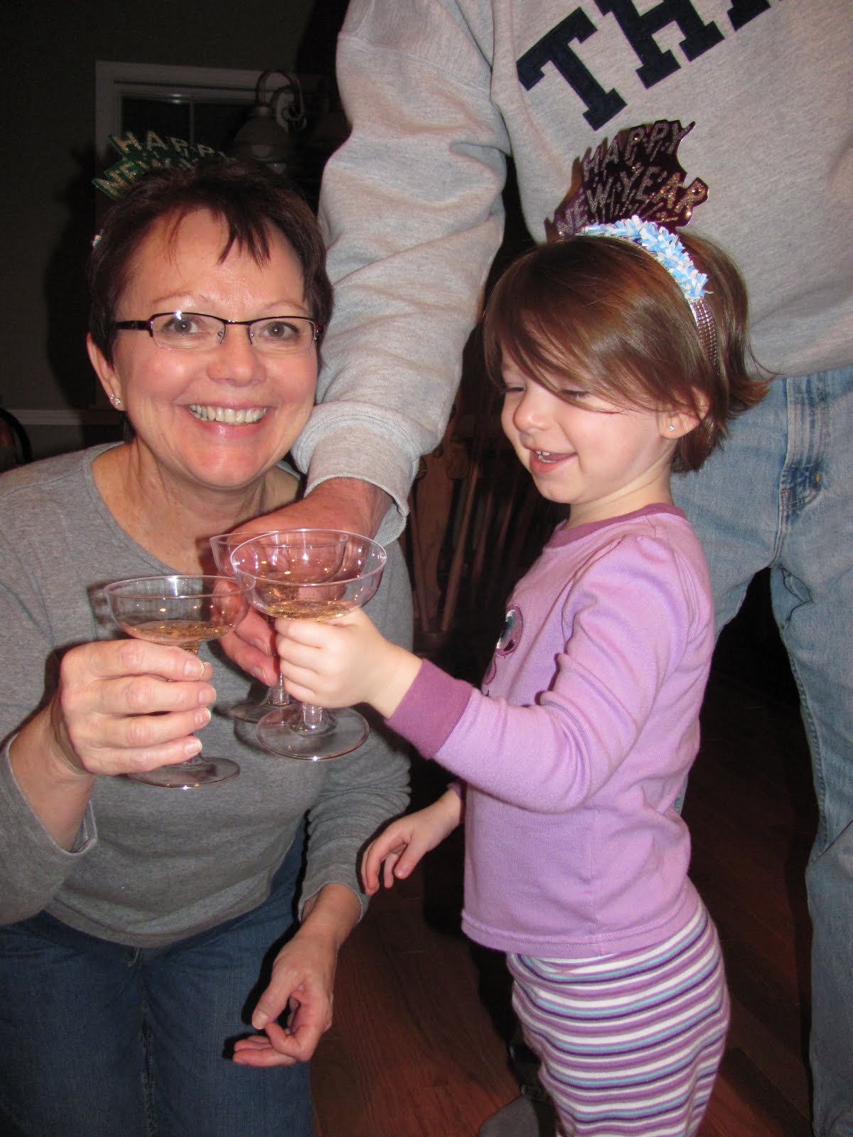 While Pat and I went out to dinner New Year's Eve - to Blue Point in the warehouse district of Cleveland, and it was delicious - my parents had a little party with Leah while Max was already in bed. The final image is actually a video that I have to say is pretty funny!
